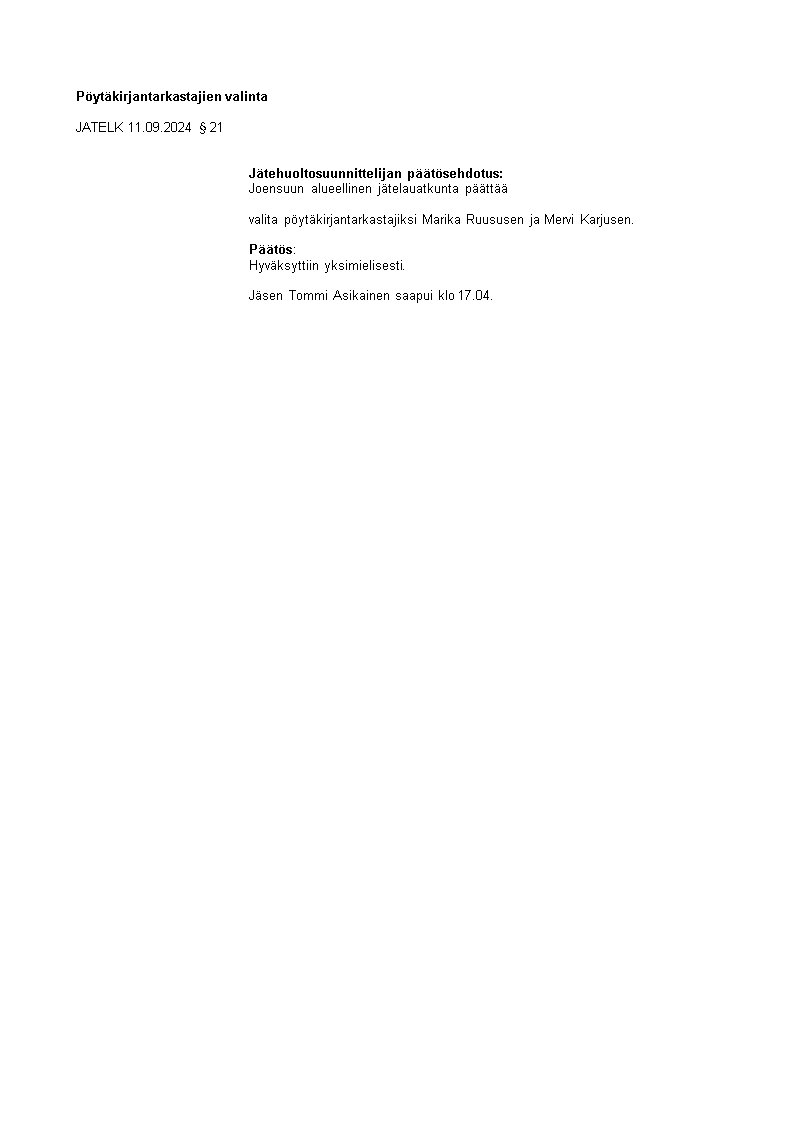 Pöytäkirja 11.09.2024/Pykälä 21