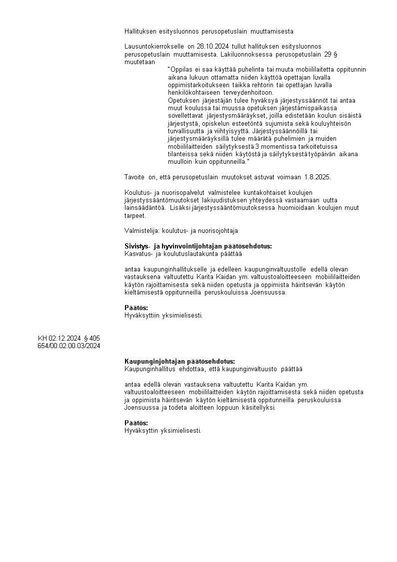 Pöytäkirja 02.12.2024/Pykälä 405