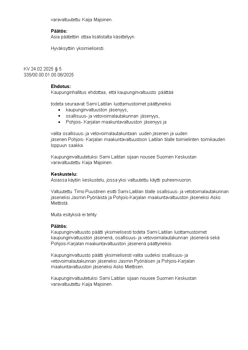 Pöytäkirja 24.02.2025/Pykälä 5