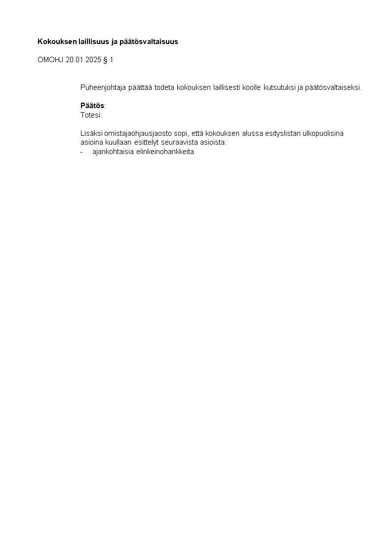 Pöytäkirja 20.01.2025/Pykälä 1