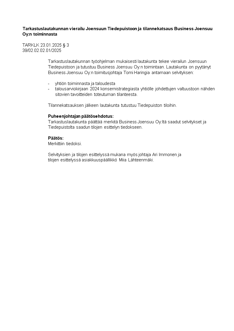1 Business Joensuu Oyn talousarvion 2024 tavoitteet