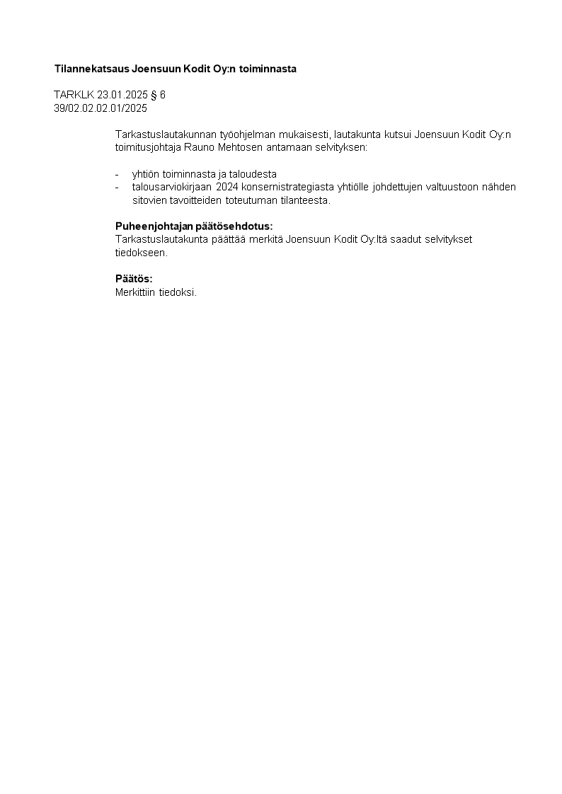 3 Joensuun Kodit Oyn talousarvion 2024 tavoitteet