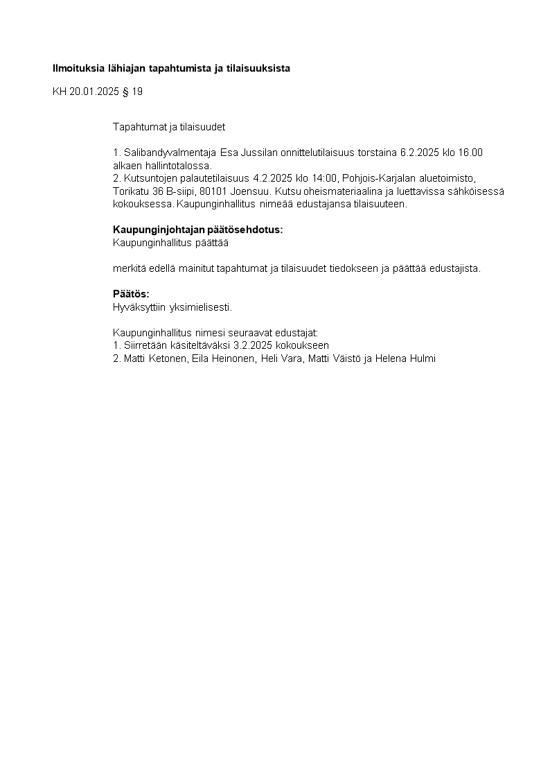Pöytäkirja 20.01.2025/Pykälä 19