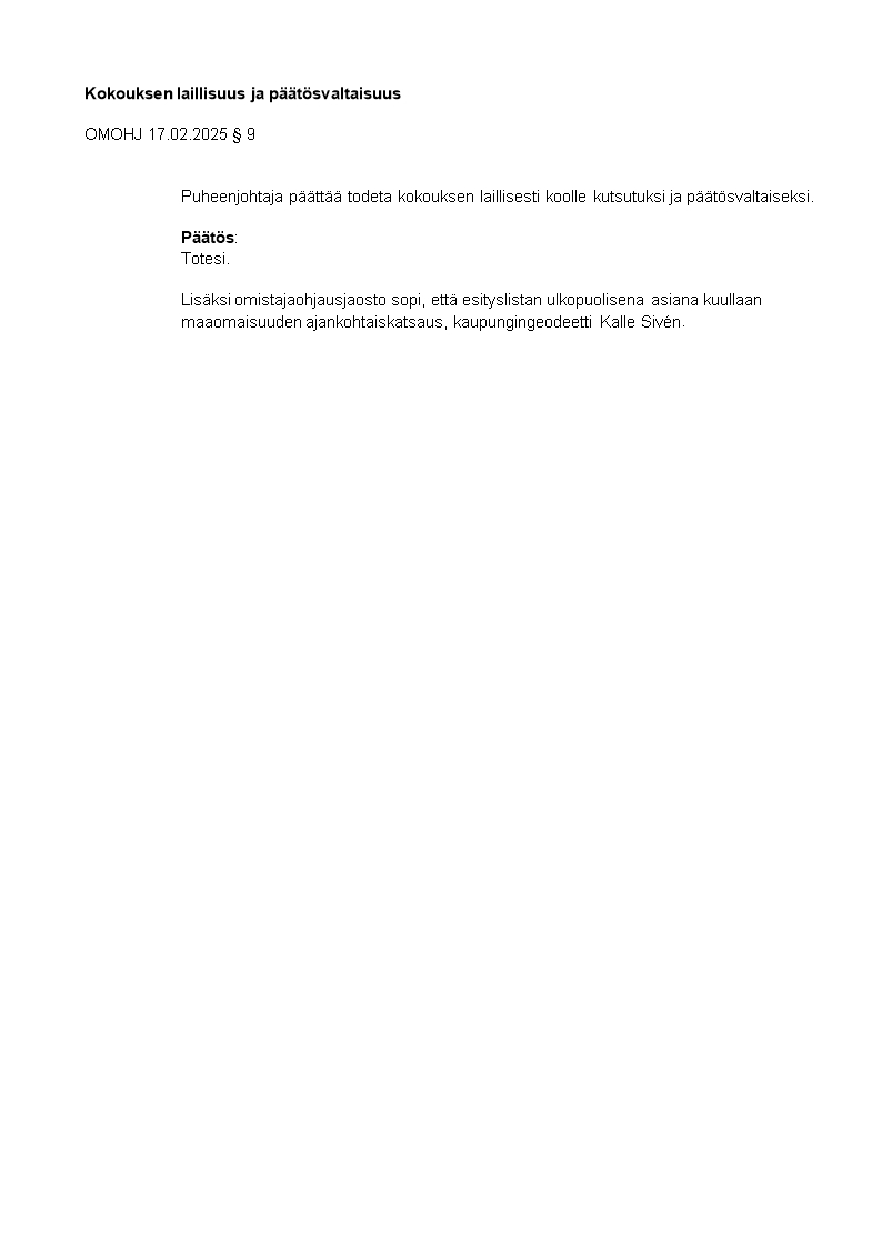 Pöytäkirja 17.02.2025/Pykälä 9