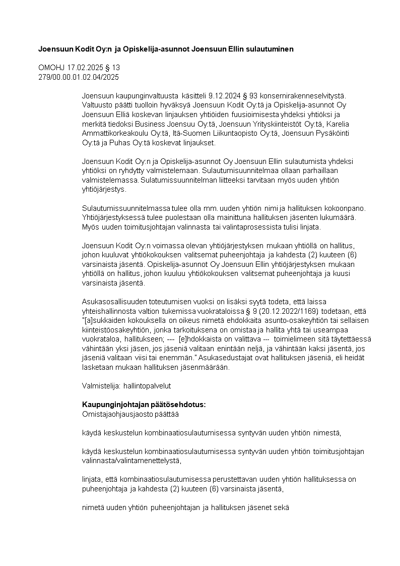 Dynasty tietopalvelu Haku RSS Joensuun kaupunki