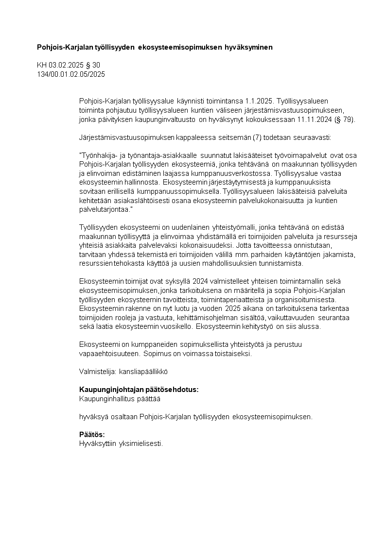 Pöytäkirja 03.02.2025/Pykälä 30