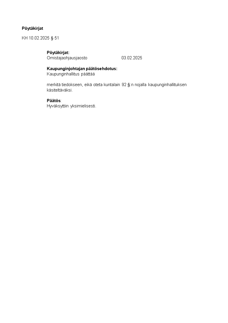 Pöytäkirja 10.02.2025/Pykälä 51