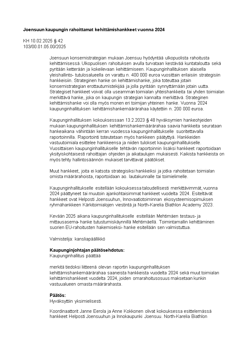 Pöytäkirja 10.02.2025/Pykälä 42