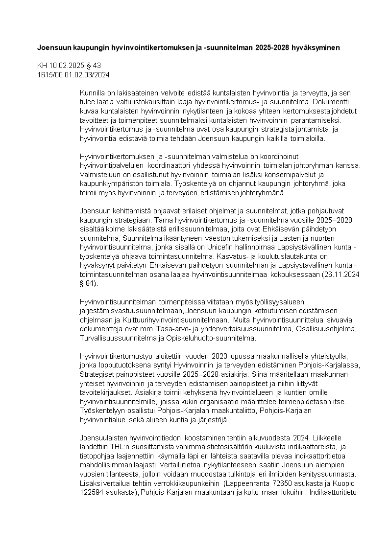 Pöytäkirja 10.02.2025/Pykälä 43