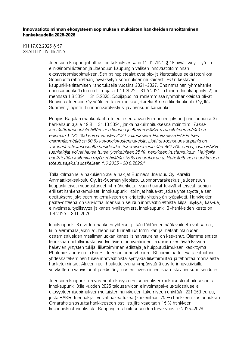 Pöytäkirja 17.02.2025/Pykälä 57