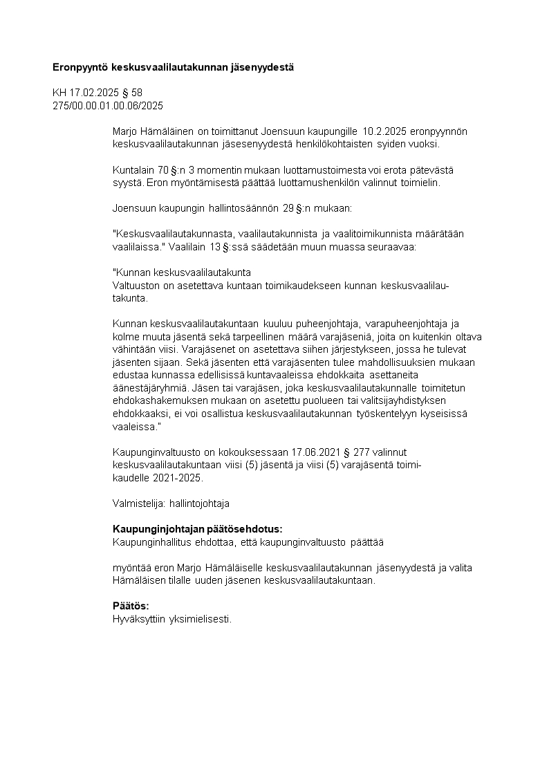 Pöytäkirja 17.02.2025/Pykälä 58