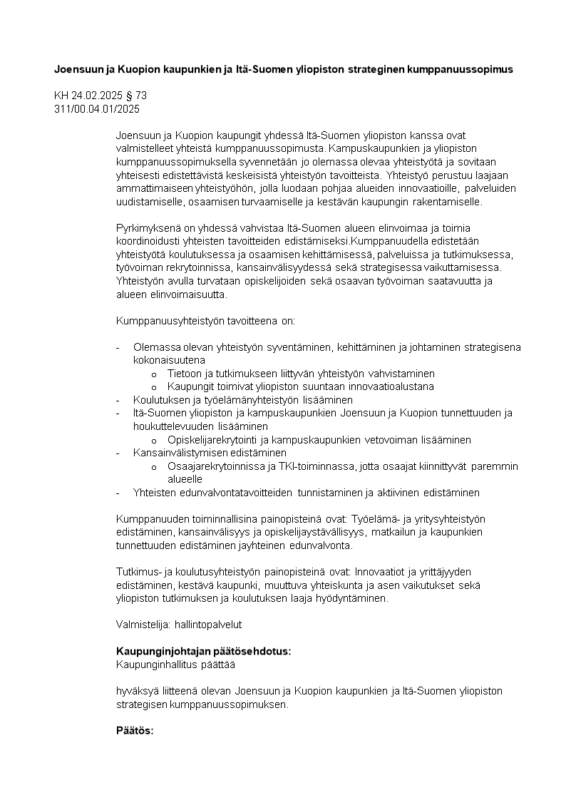 Pöytäkirja 24.02.2025/Pykälä 73