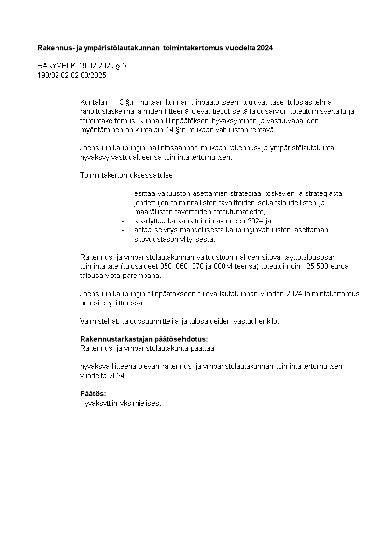 Pöytäkirja 19.02.2025/Pykälä 5