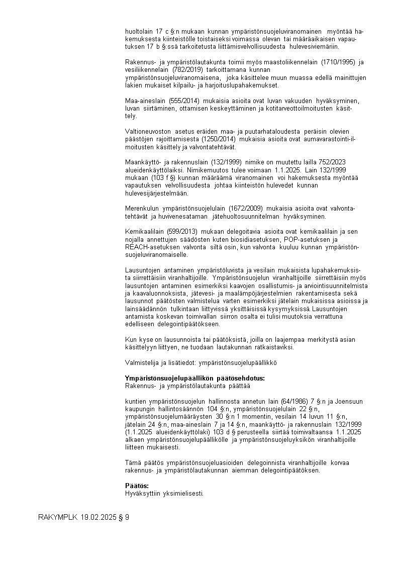 Pöytäkirja 19.02.2025/Pykälä 9