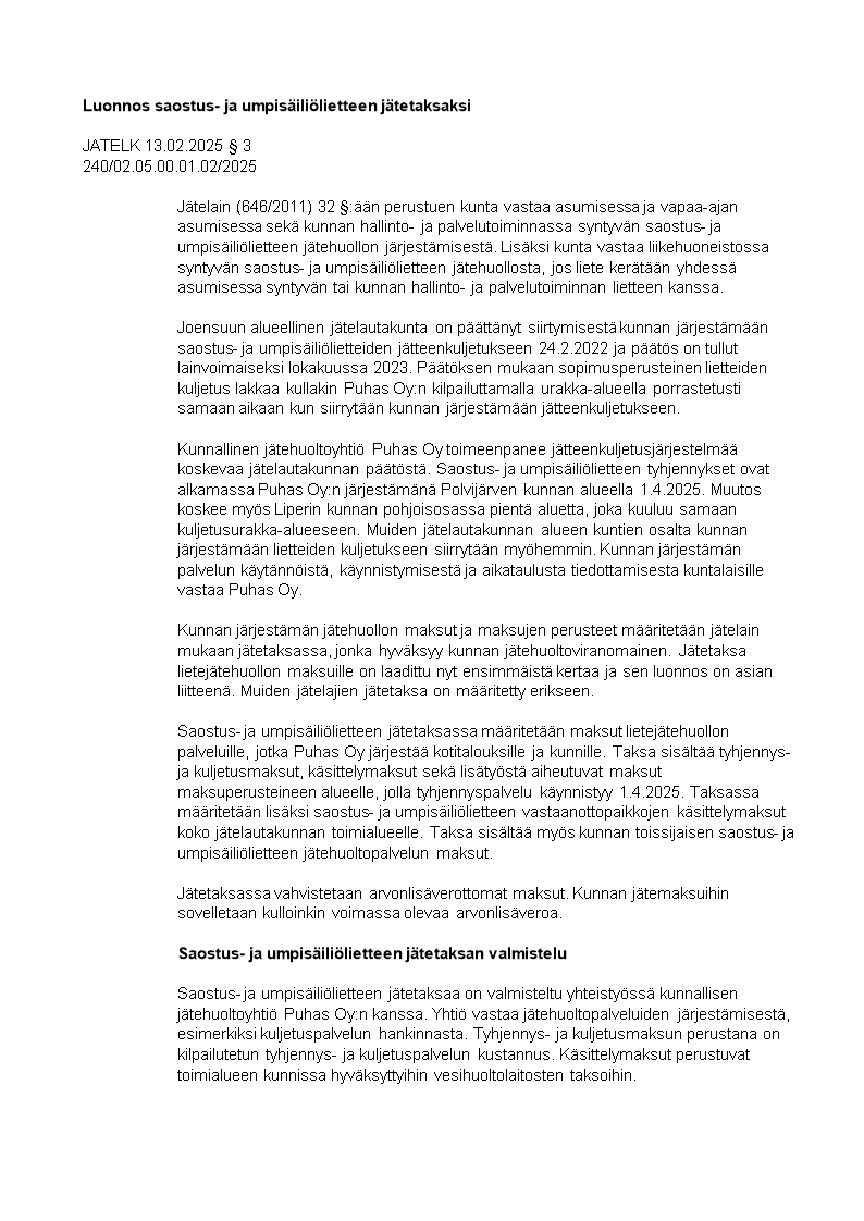 Pöytäkirja 13.02.2025/Pykälä 3