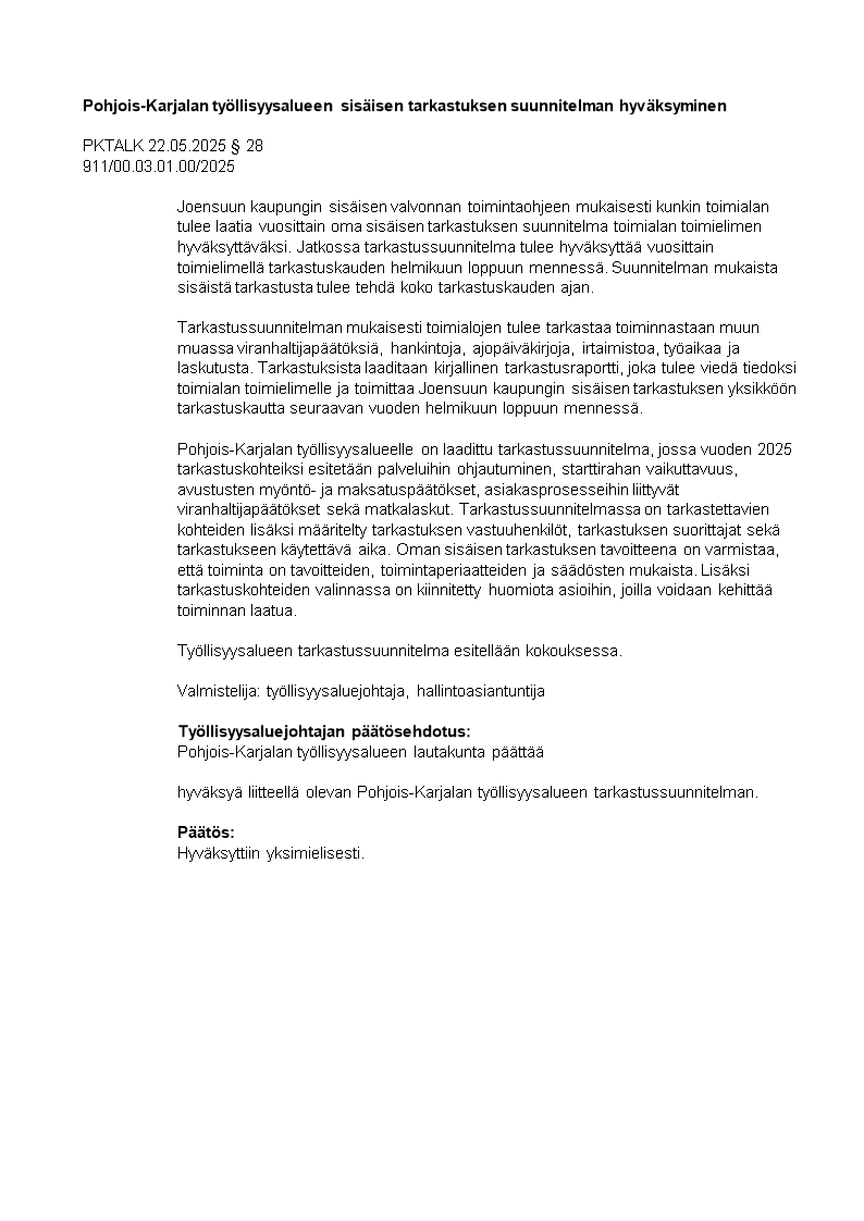 Liite 4 Työllisyysalueen tarkastussuunnitelma 2025