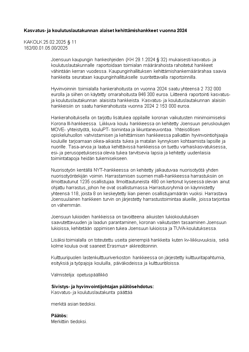 Dynasty tietopalvelu Haku RSS Joensuun kaupunki