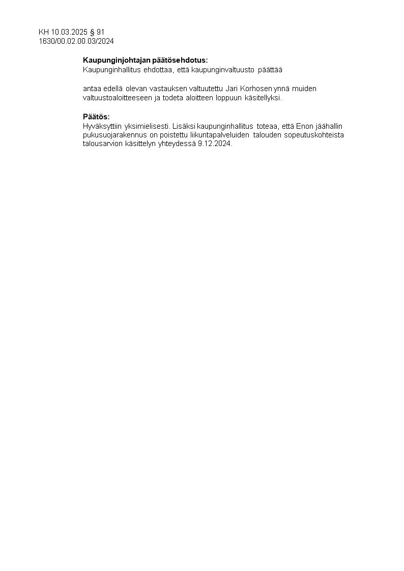 Pöytäkirja 10.03.2025/Pykälä 91