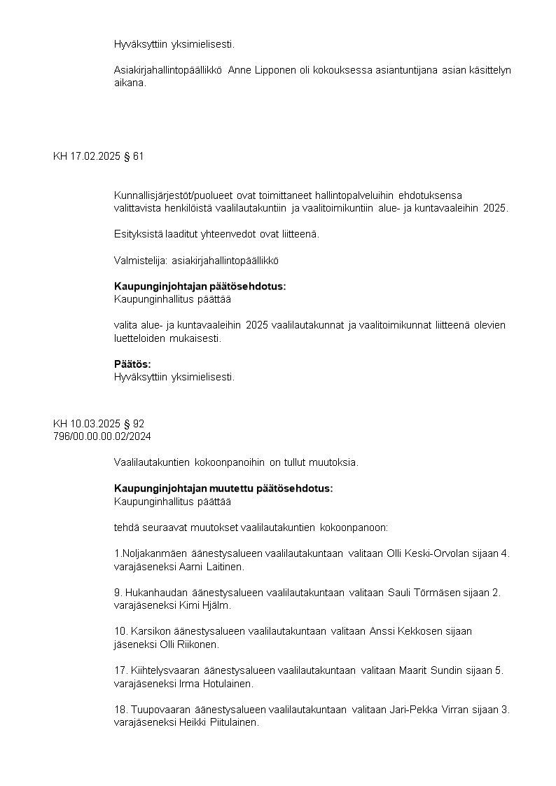 Pöytäkirja 10.03.2025/Pykälä 92