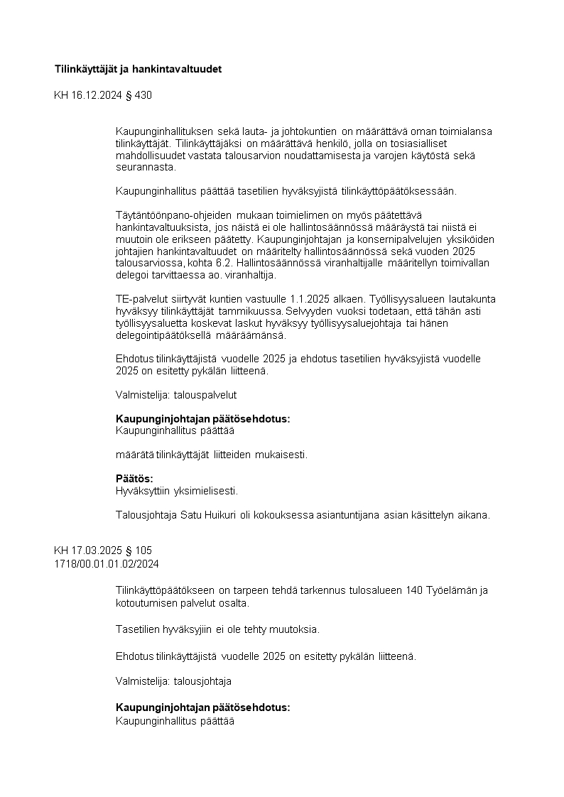 Pöytäkirja 17.03.2025/Pykälä 105