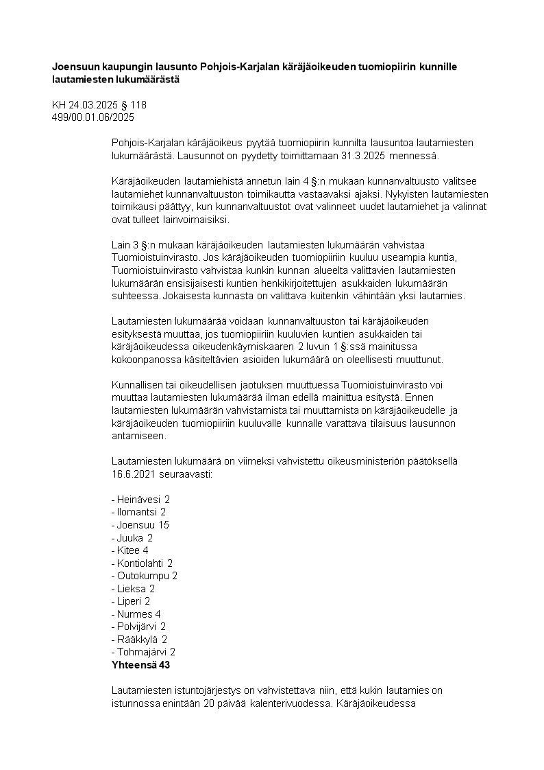 Pöytäkirja 24.03.2025/Pykälä 118