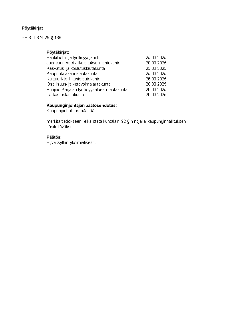 Pöytäkirja 31.03.2025/Pykälä 136