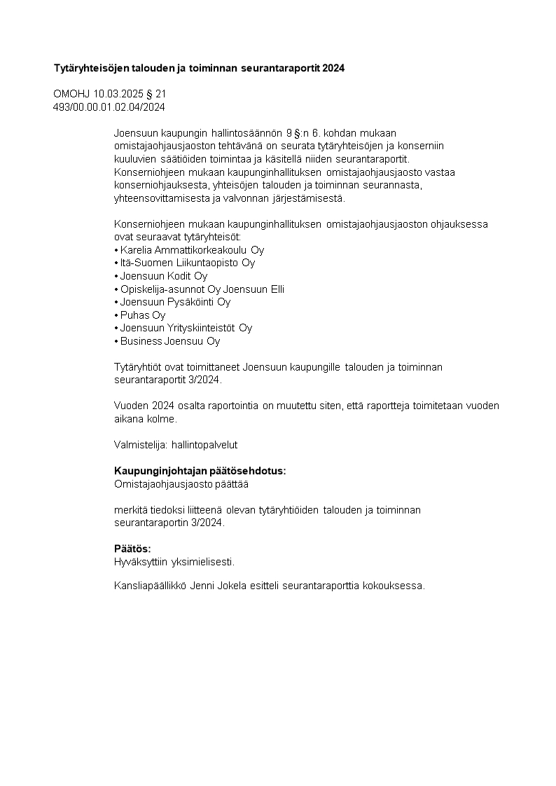 Dynasty tietopalvelu Haku RSS Joensuun kaupunki
