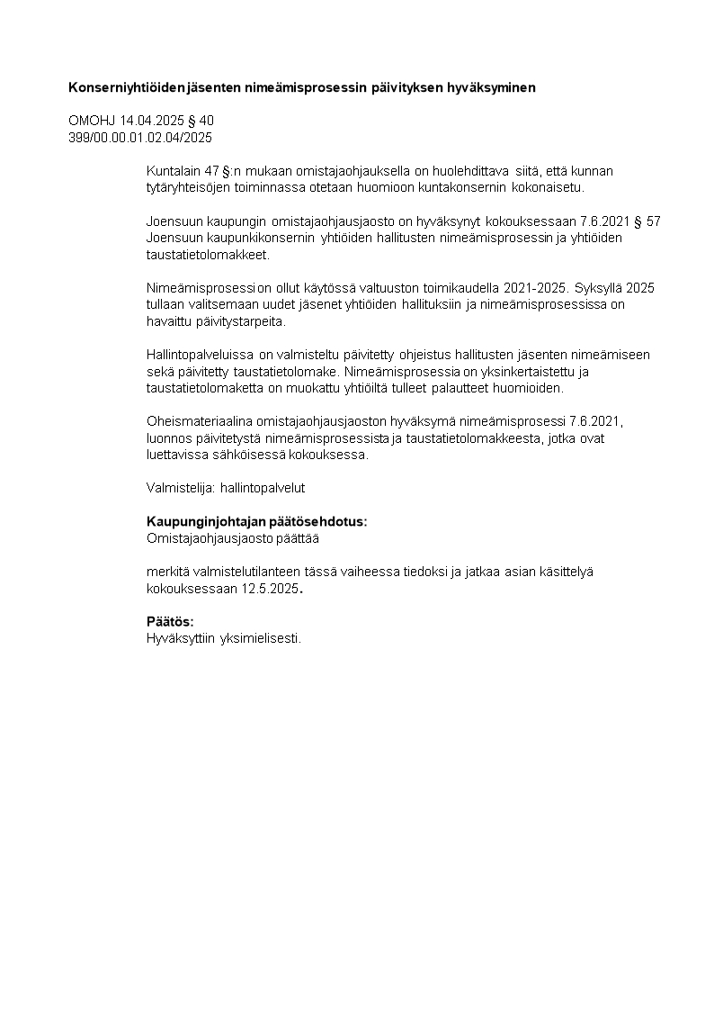 Dynasty tietopalvelu Haku RSS Joensuun kaupunki