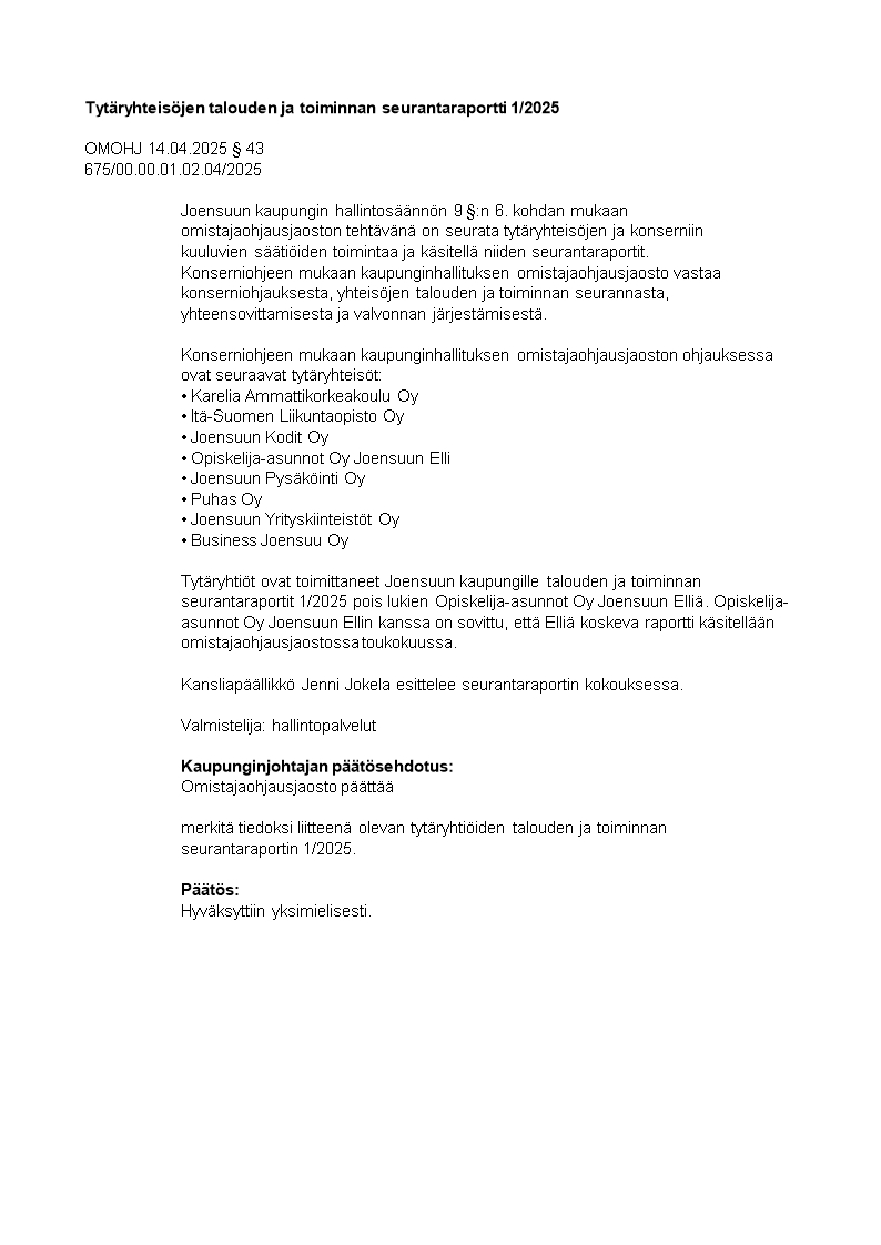 Dynasty tietopalvelu Haku RSS Joensuun kaupunki