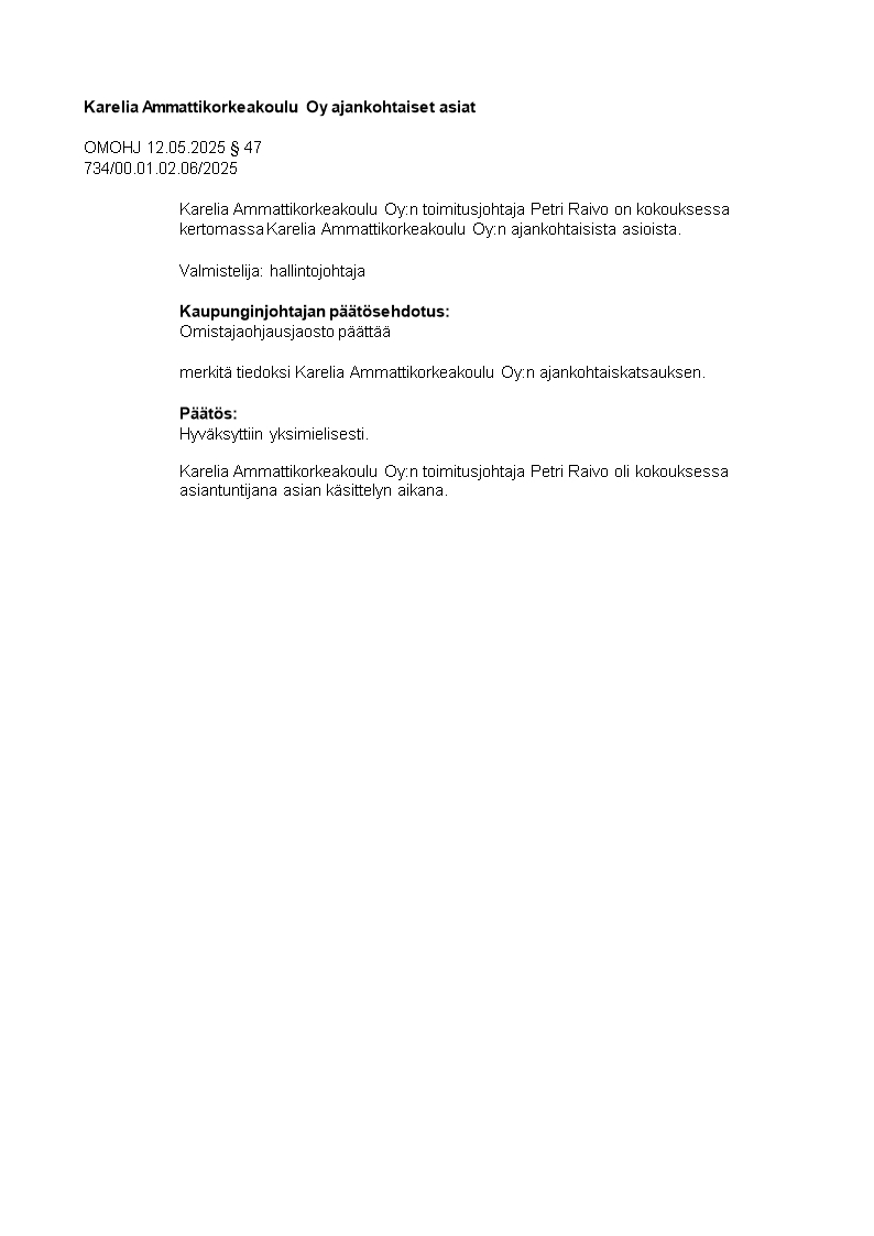 Pöytäkirja 12.05.2025/Pykälä 47
