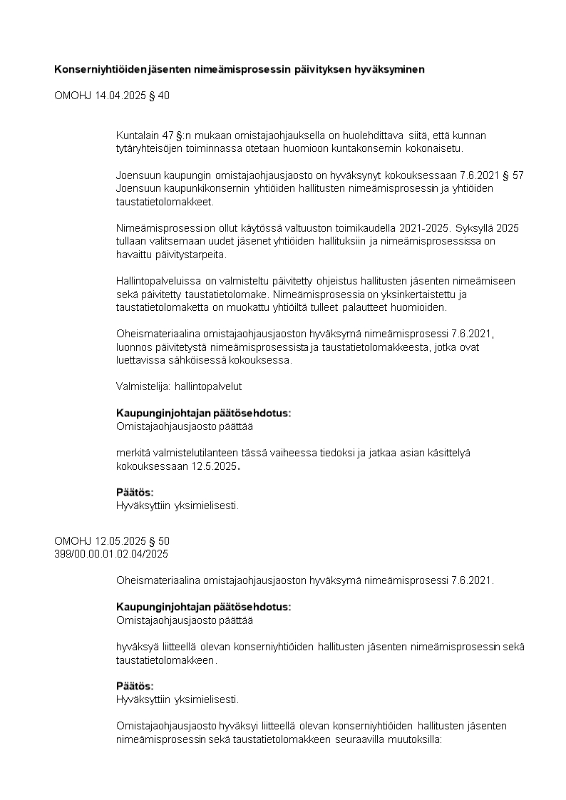 Pöytäkirja 12.05.2025/Pykälä 50
