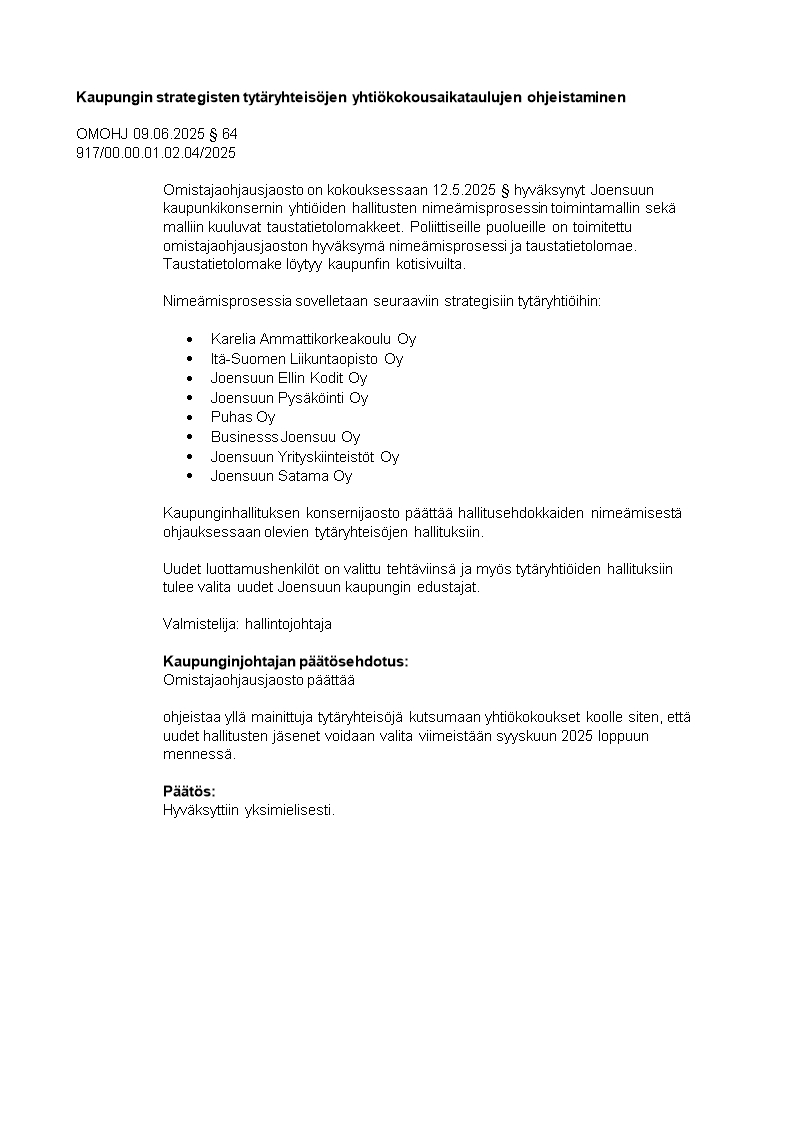 Dynasty tietopalvelu Haku RSS Joensuun kaupunki