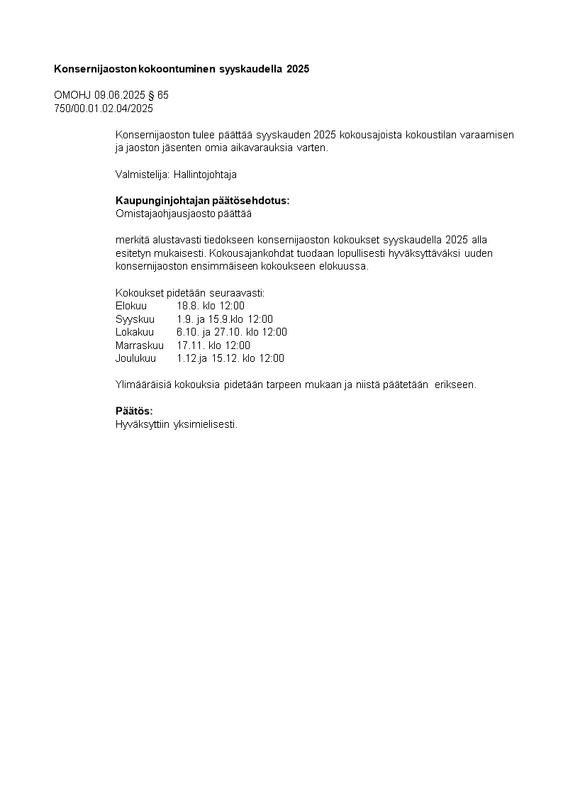 Pöytäkirja 09.06.2025/Pykälä 65
