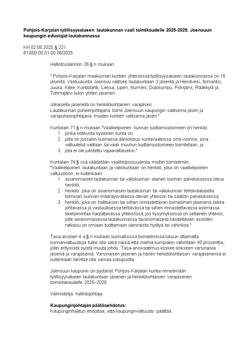 Pöytäkirja 02.06.2025/Pykälä 221