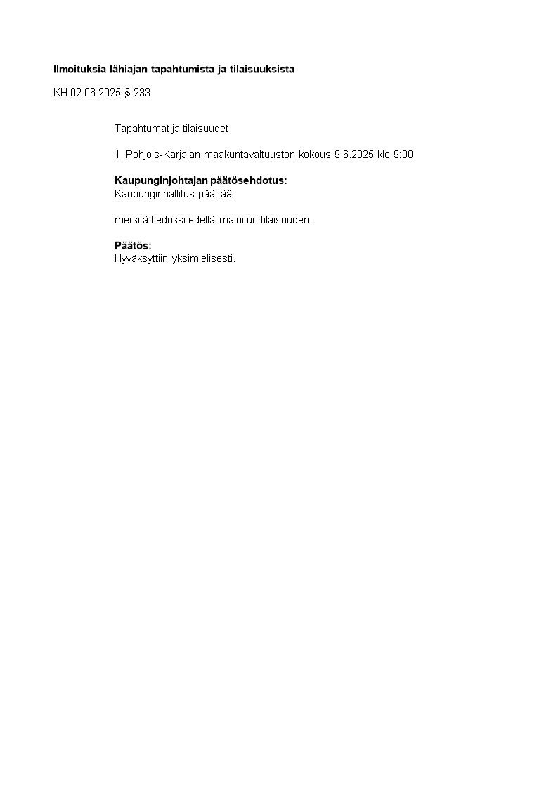 Pöytäkirja 02.06.2025/Pykälä 233