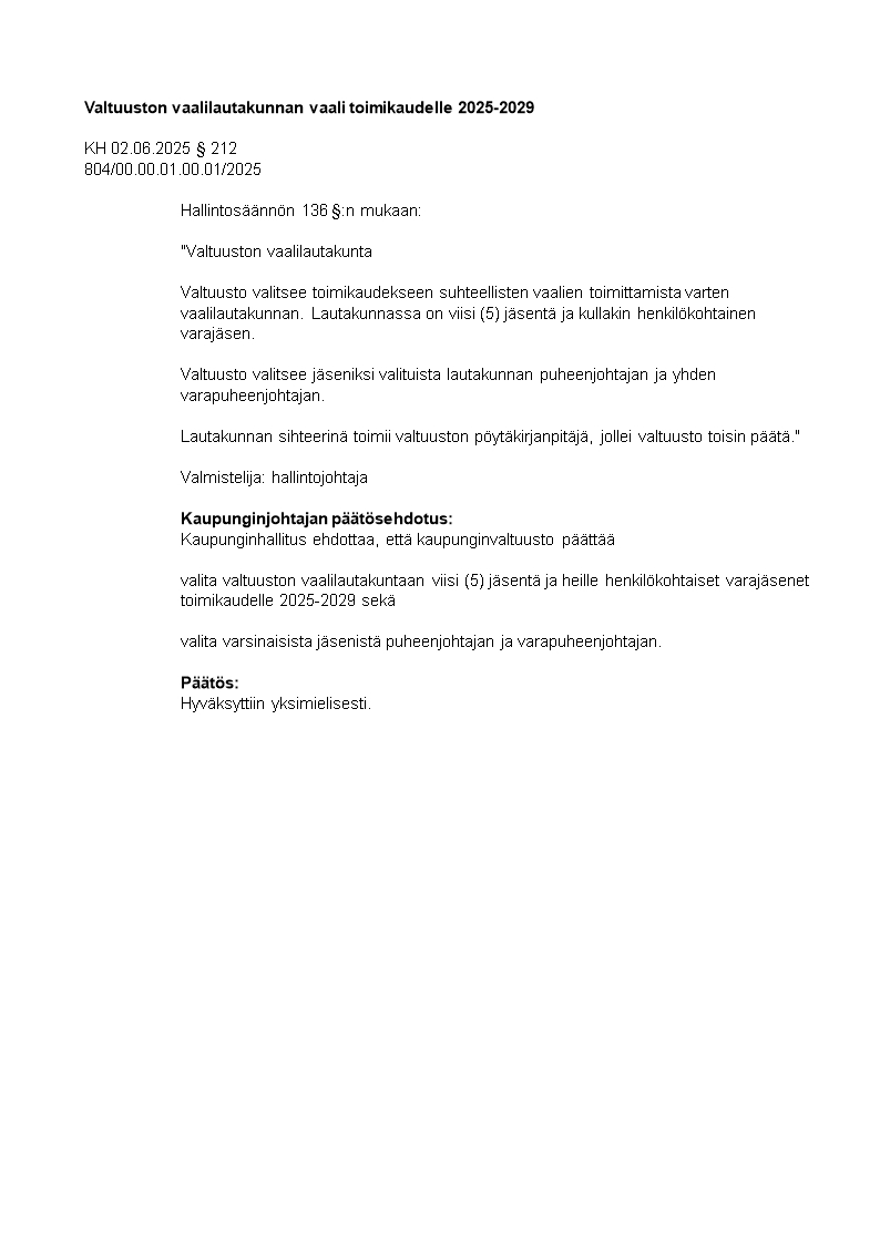 Pöytäkirja 02.06.2025/Pykälä 212