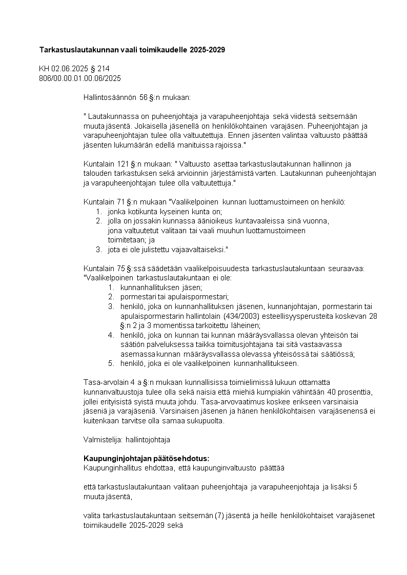 Pöytäkirja 02.06.2025/Pykälä 214