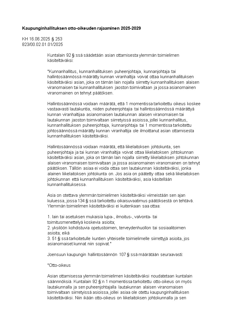 Pöytäkirja 16.06.2025/Pykälä 253