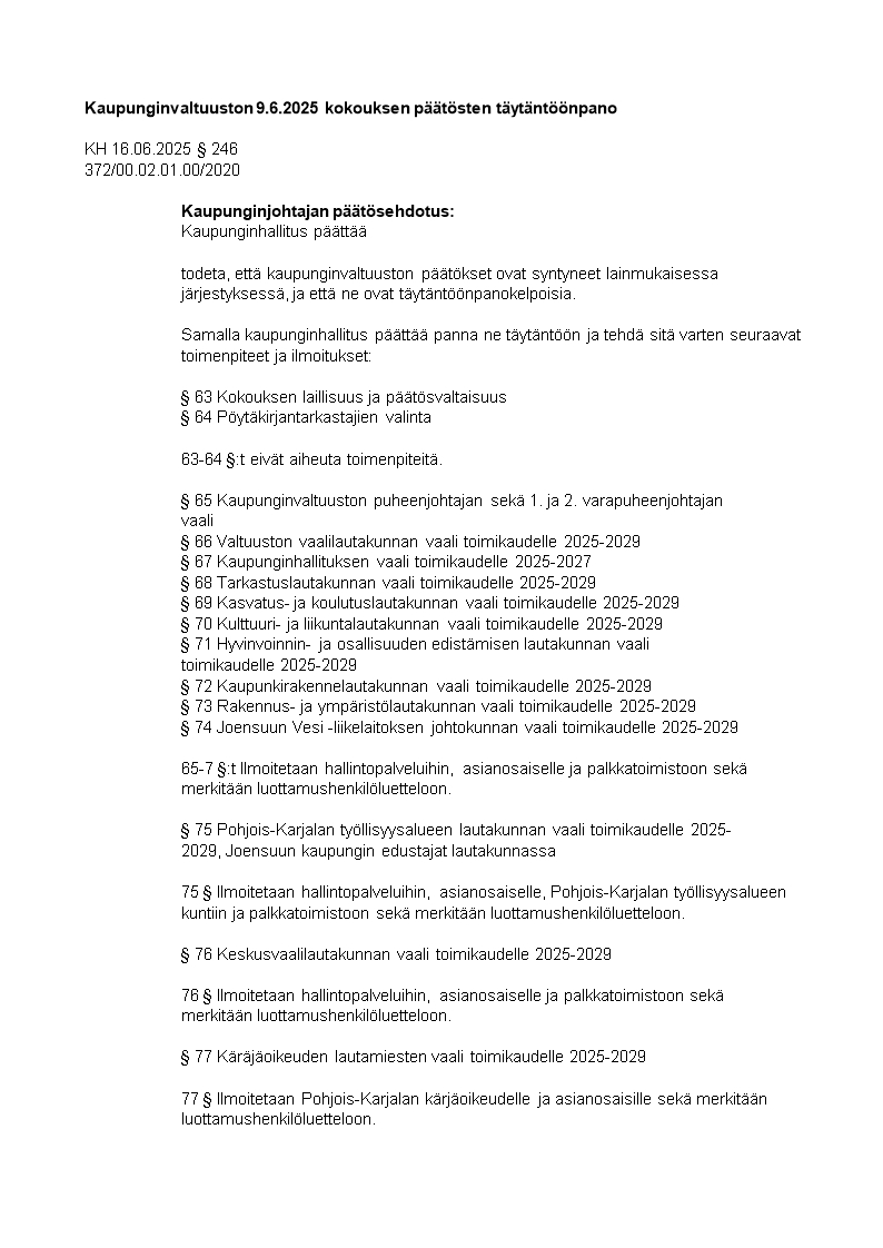 Pöytäkirja 16.06.2025/Pykälä 246
