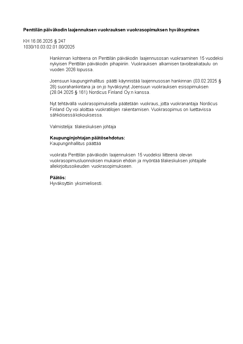 Pöytäkirja 16.06.2025/Pykälä 247