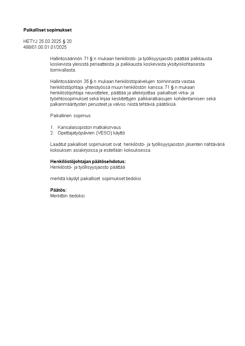 Pöytäkirja 25.03.2025/Pykälä 20