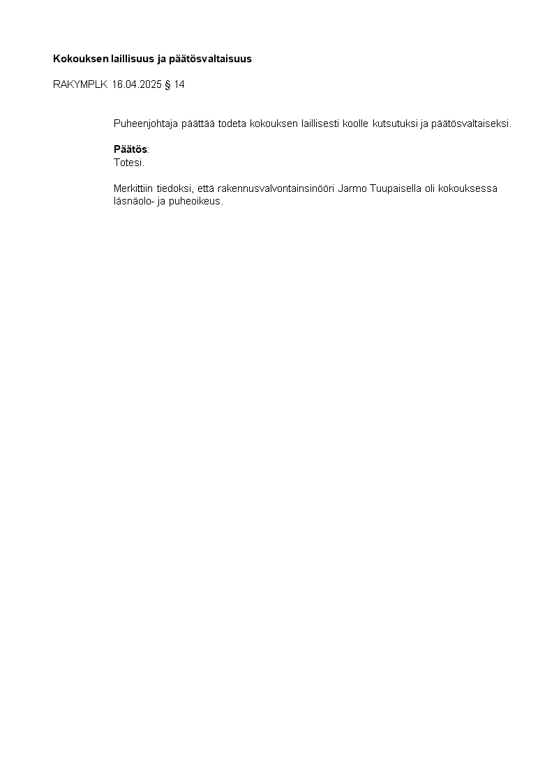 Pöytäkirja 16.04.2025/Pykälä 14