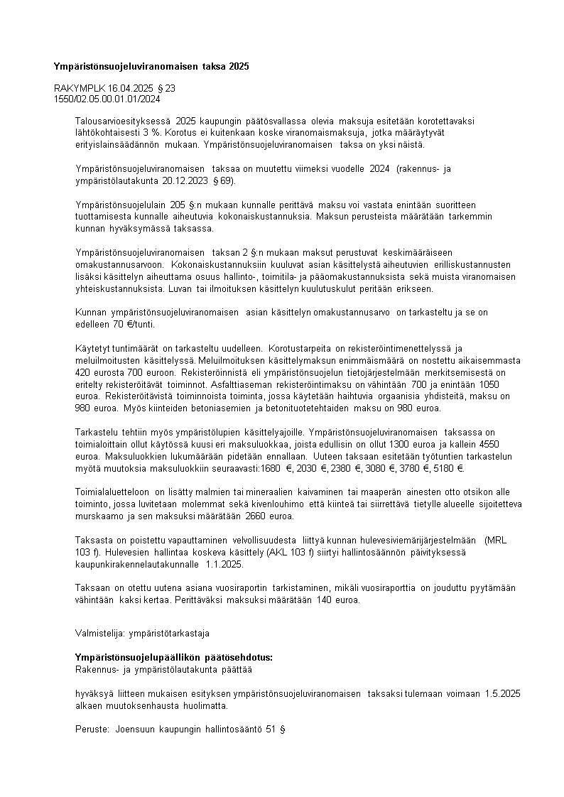 6 Ympäristönsuojeluviranomaisen taksa 2025