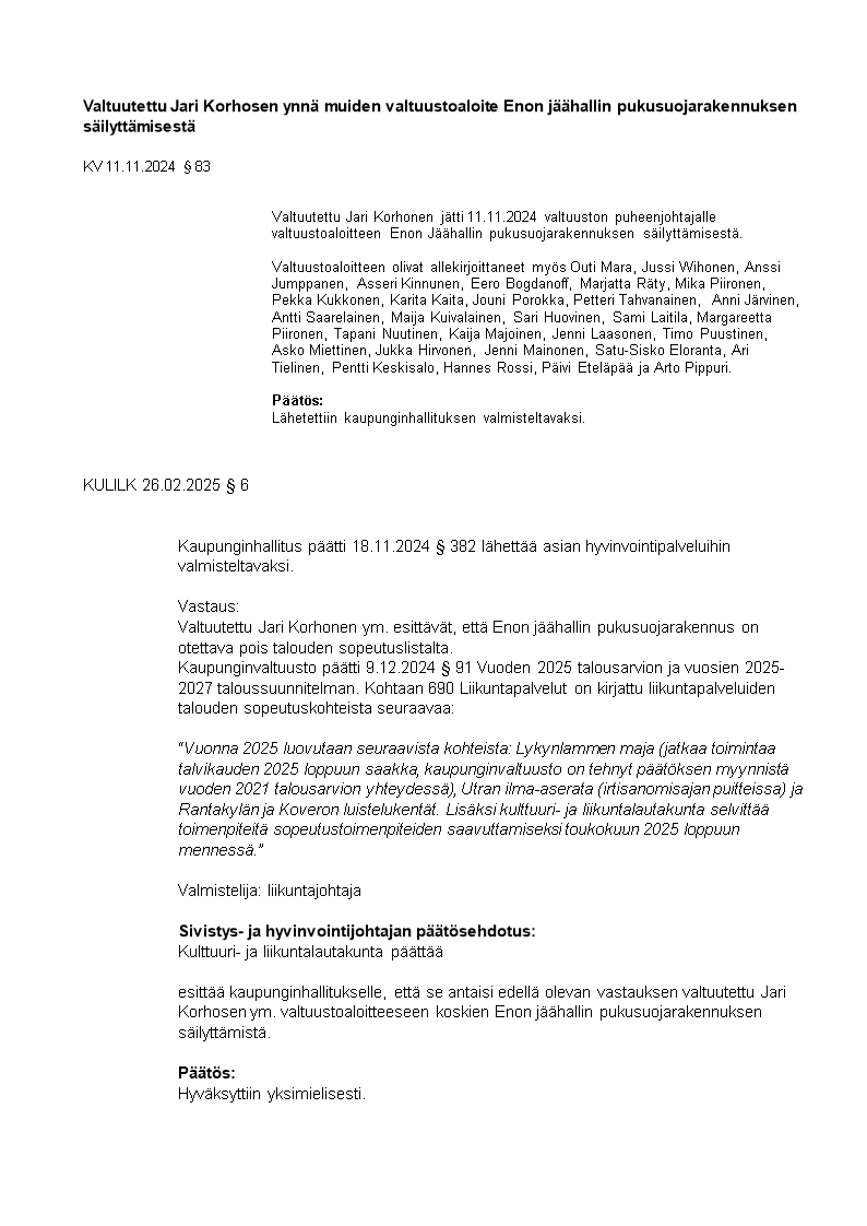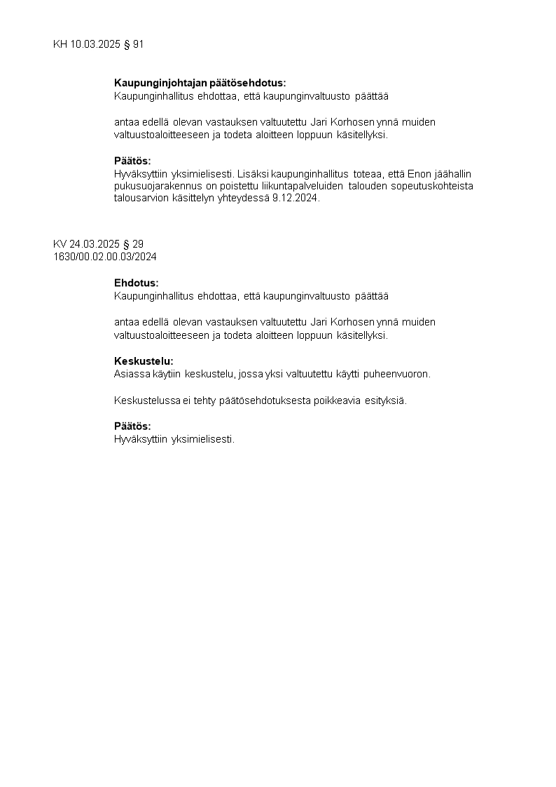 Pöytäkirja 24.03.2025/Pykälä 29