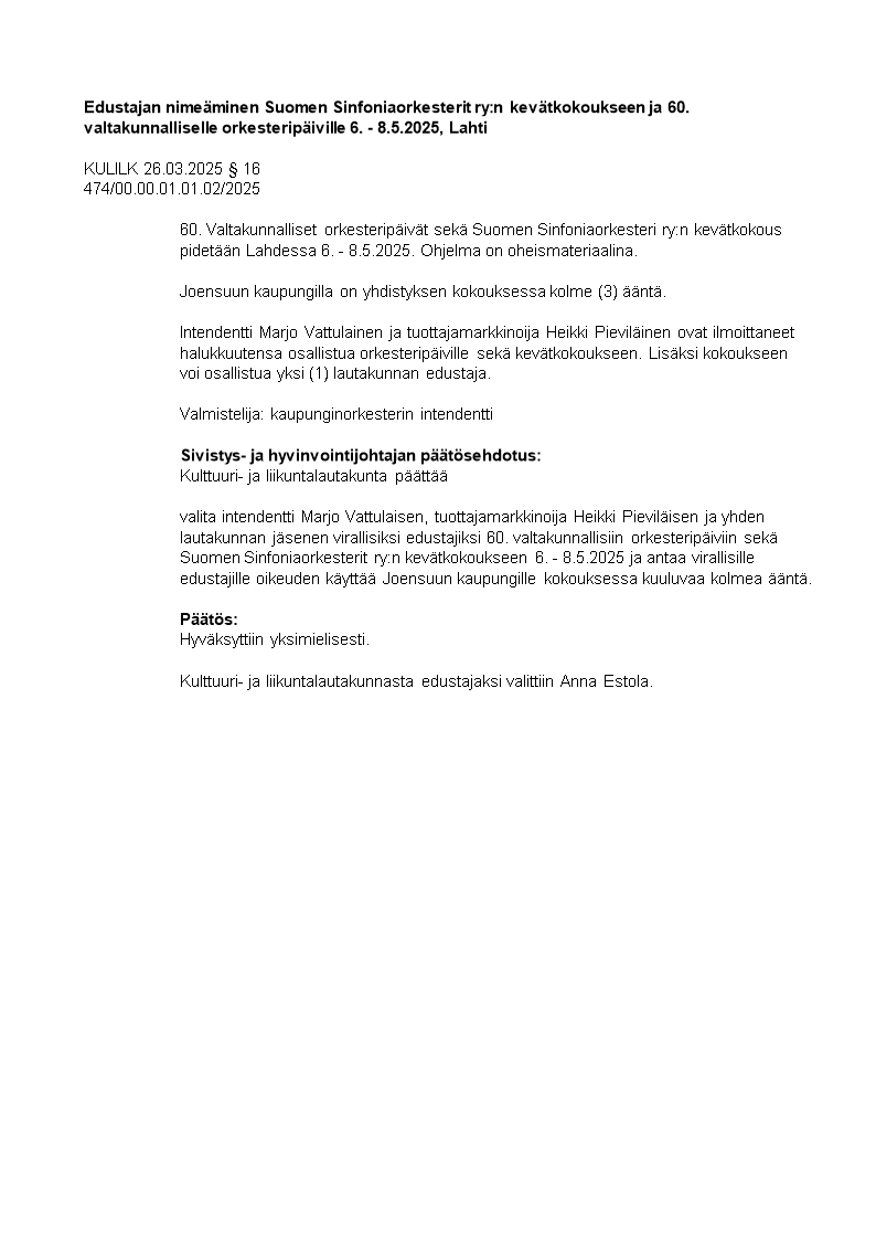 Pöytäkirja 26.03.2025/Pykälä 16