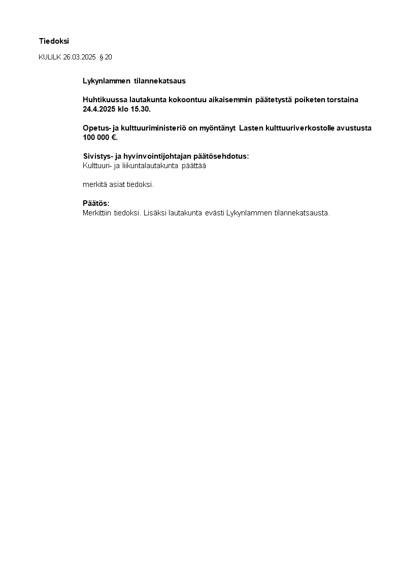 Pöytäkirja 26.03.2025/Pykälä 20