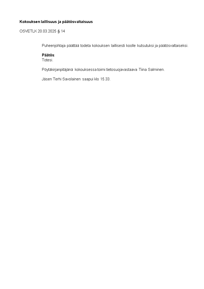 Pöytäkirja 20.03.2025/Pykälä 14