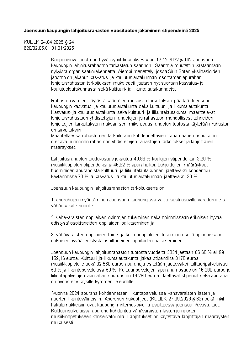 Pöytäkirja 24.04.2025/Pykälä 24