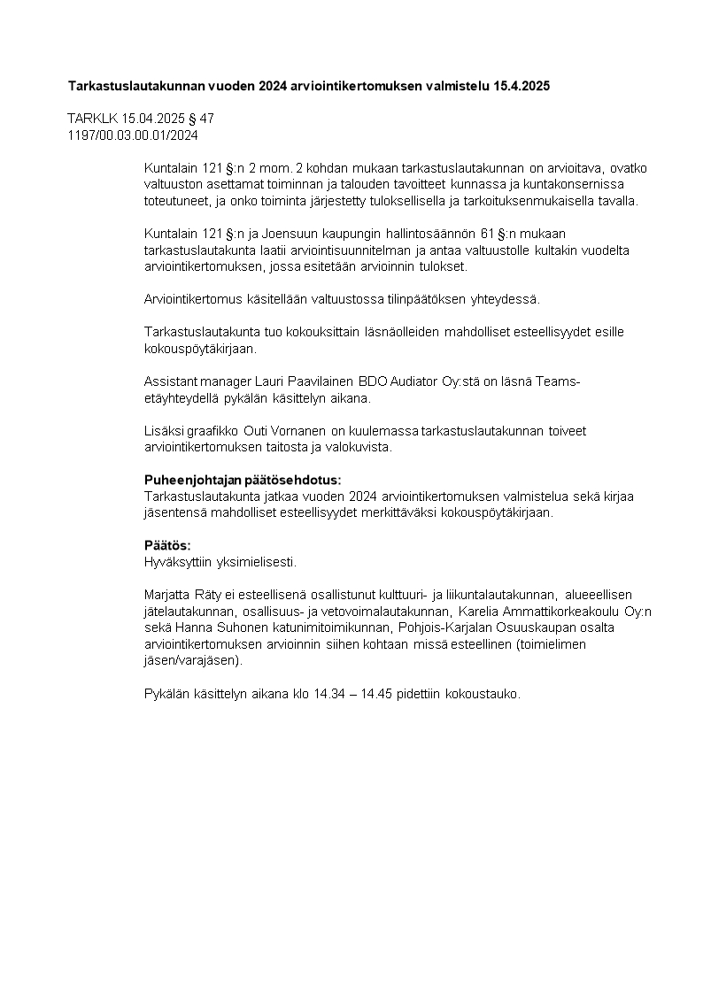 Pöytäkirja 15.04.2025/Pykälä 47