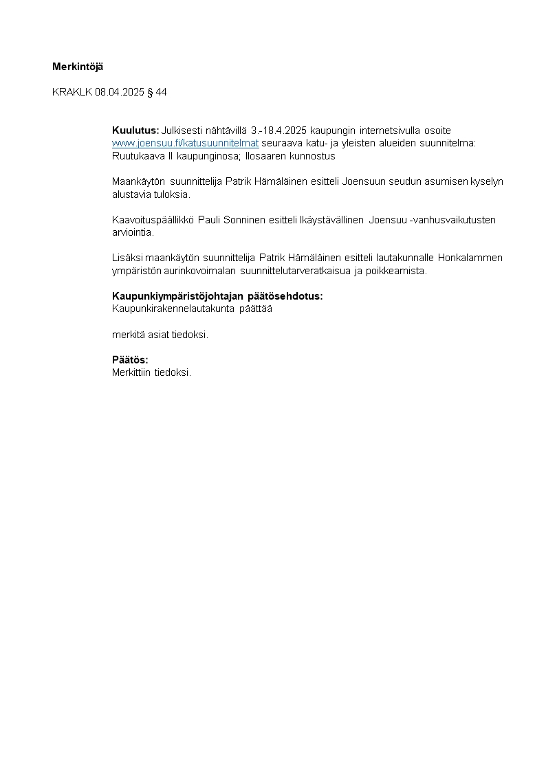 Dynasty tietopalvelu Haku RSS Joensuun kaupunki